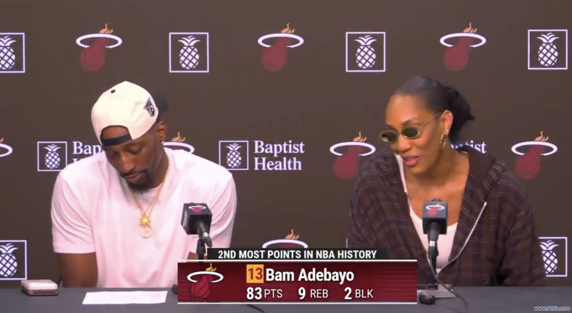 赛后巴姆-阿德巴约女友阿贾-威尔逊接受了记者采访,谈到了阿德巴约,阿贾表示:“上帝真的很眷顾他,对他非常上心。”